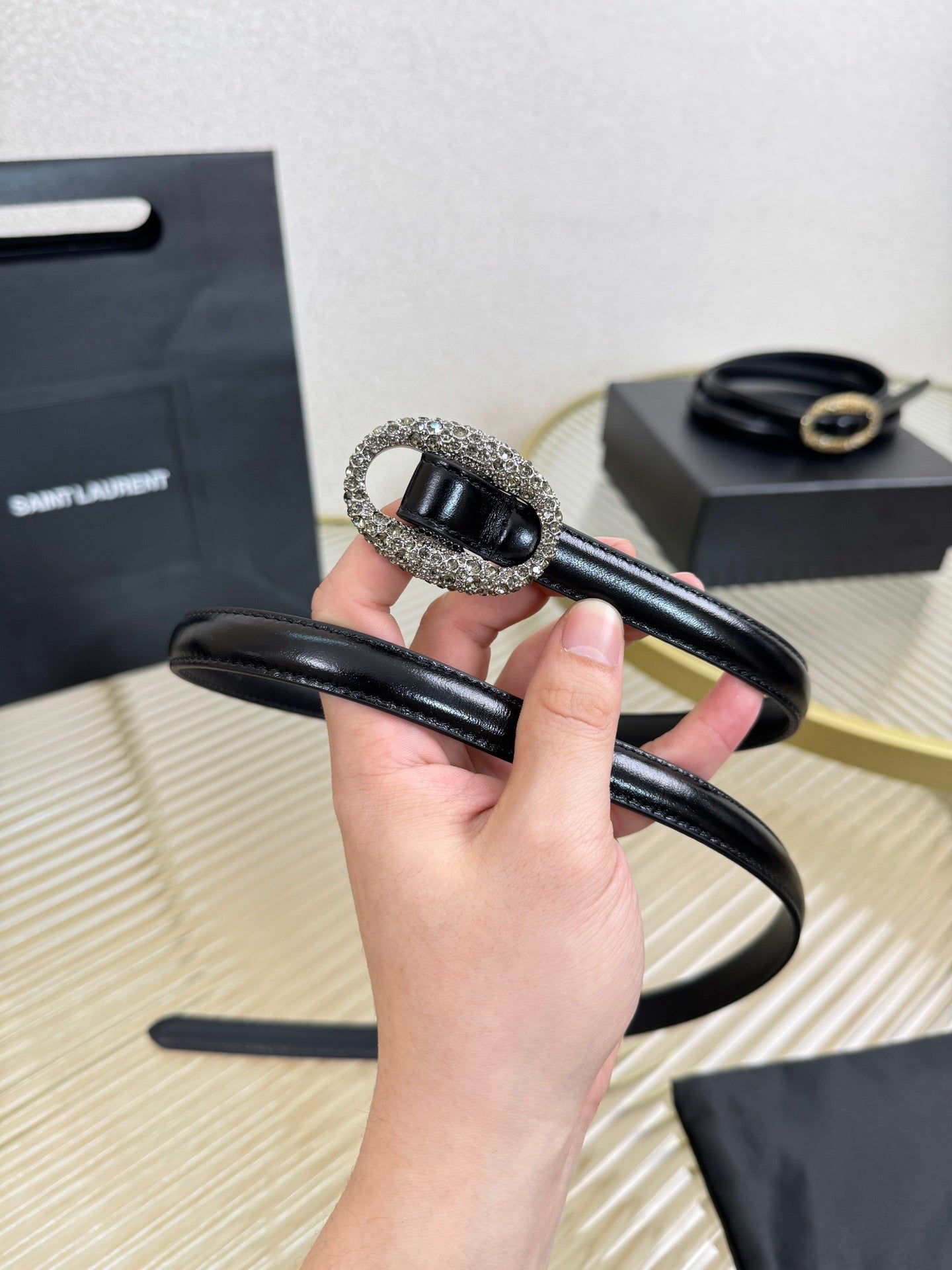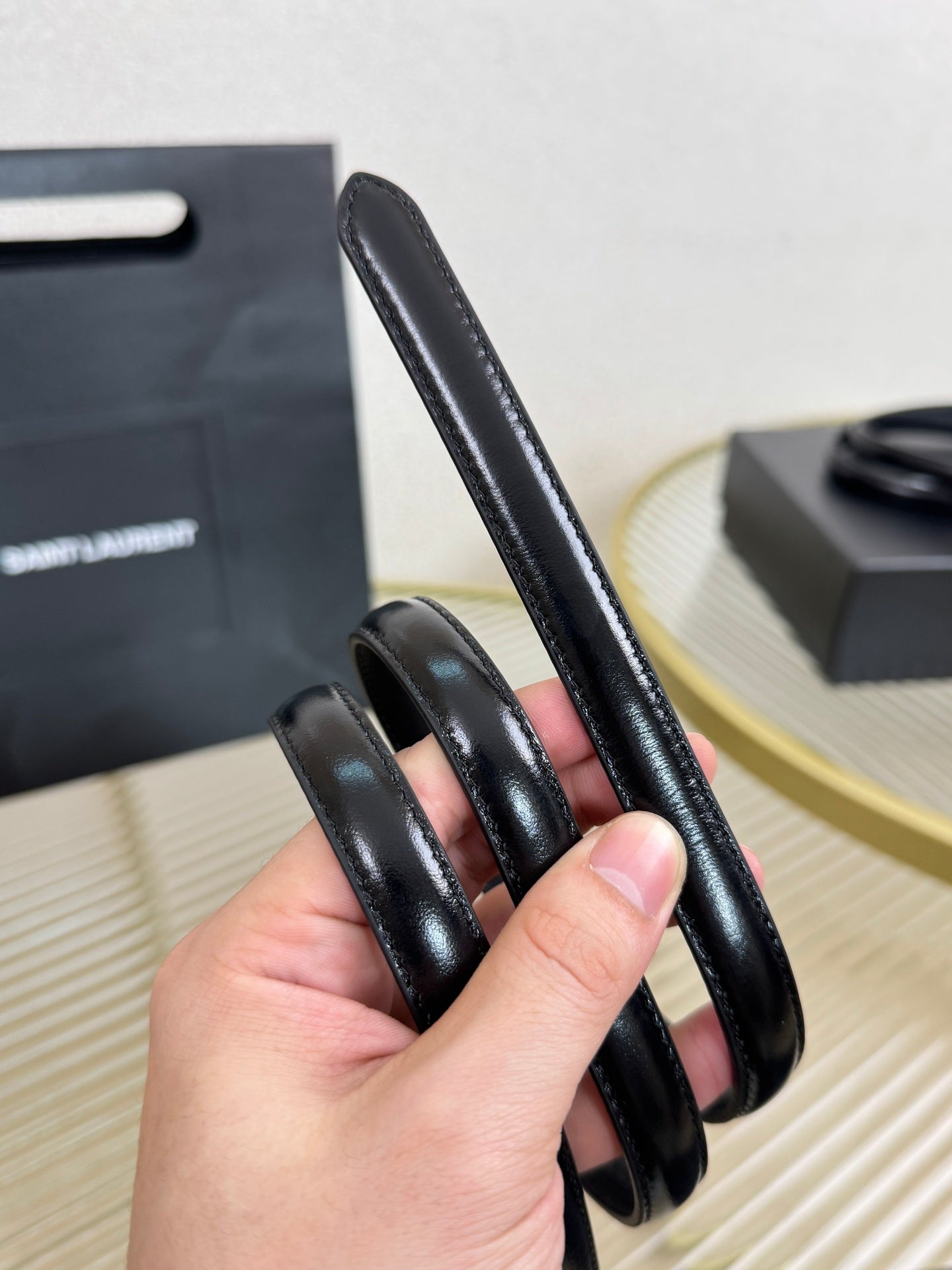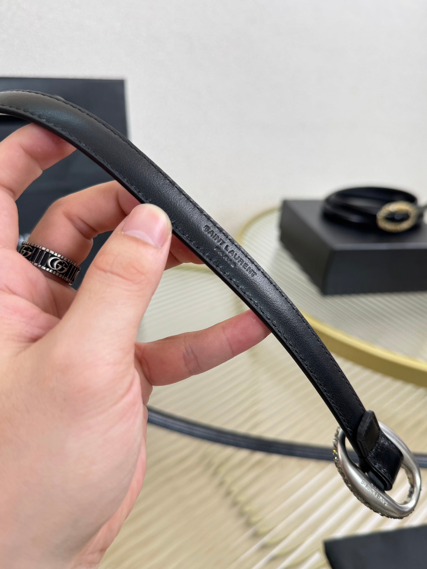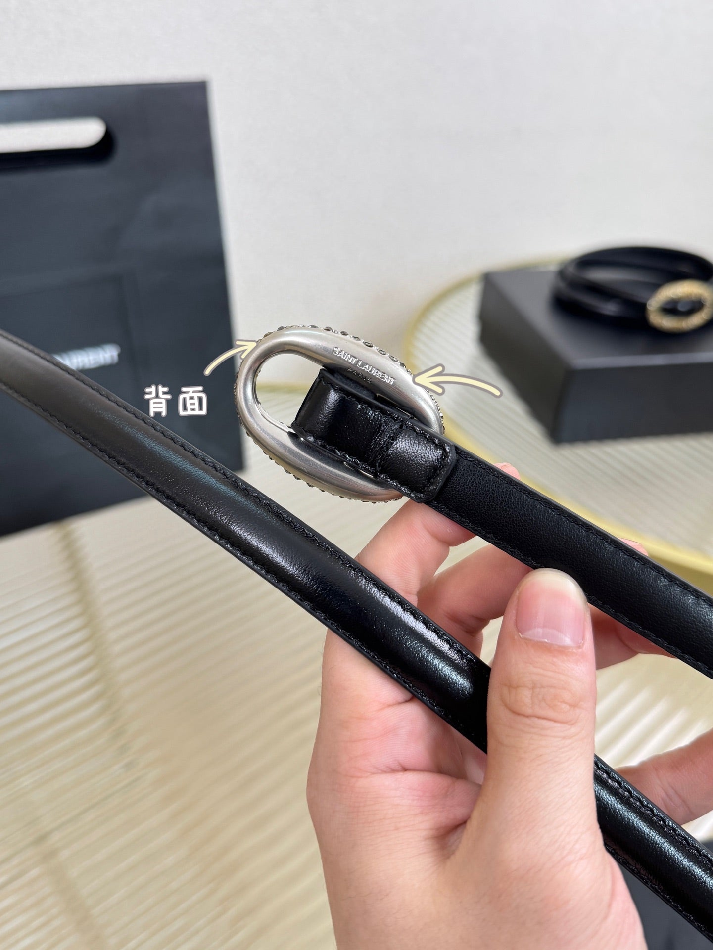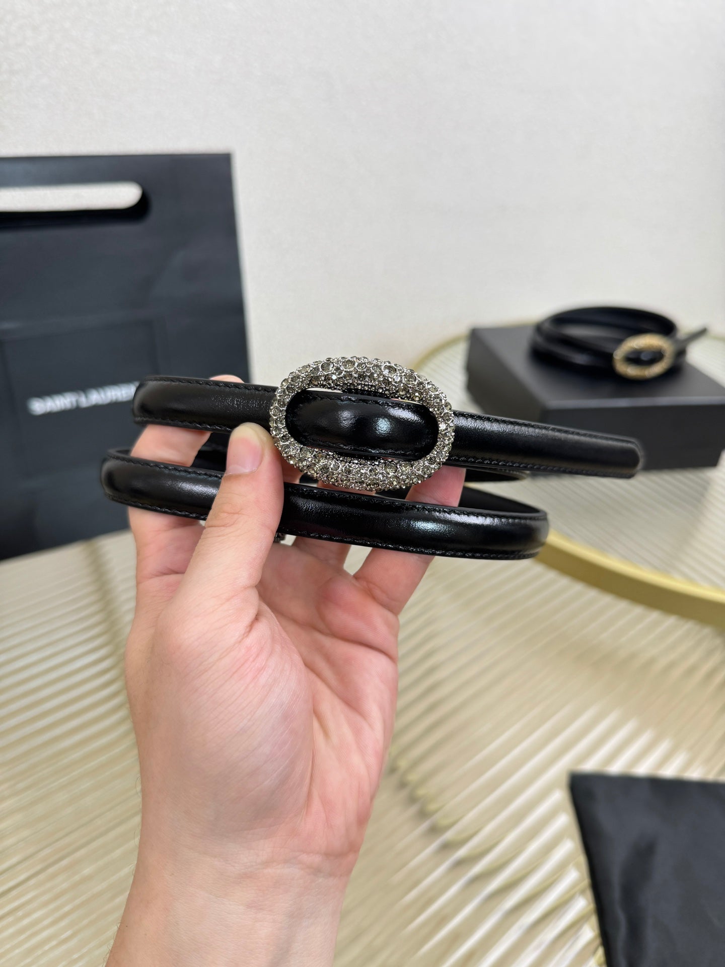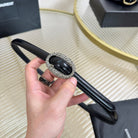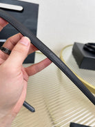 YSL 1.5 Sliver Oval Buckle Belt Black Leather 200474